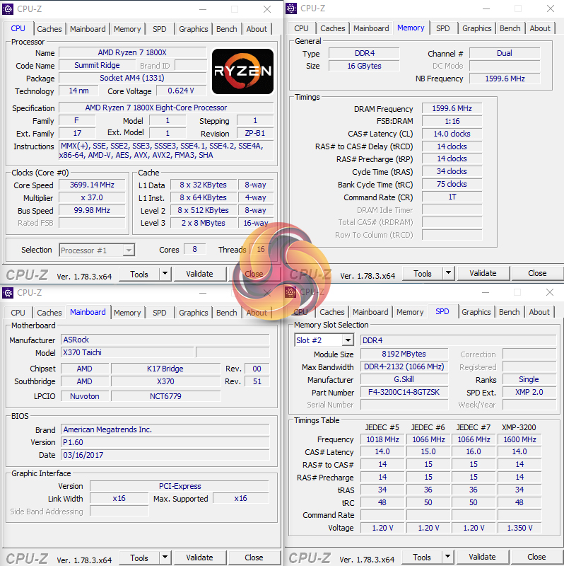 We will be outlining the ASRock X370 Taichi motherboard’s performance with the Ryzen 7 1800X CPU and 16GB of 3200MHz G.Skill TridentZ DDR4 memory.