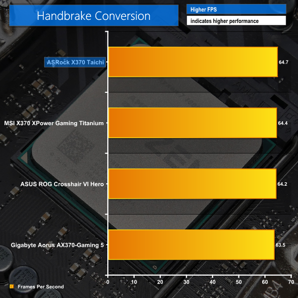 Performance from the X370 Taichi is superb. ASRock's motherboard takes top spot in all three of the above charts.
