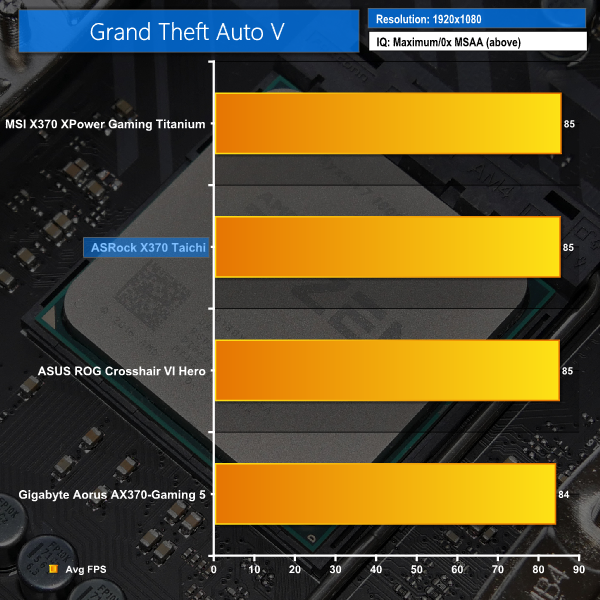 Grand Theft Auto V remains an immensely popular game for PC gamers and as such retains its place in our test suite. The well-designed game engine is capable of providing heavy stress to a number of system components, including the GPU, CPU, and Memory, and can highlight performance differences between motherboards. We run the built-in benchmark using a 1080p resolution and generally Maximum quality settings (including Advanced Graphics).