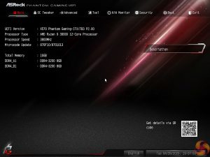 The Main page for ASRock’s UEFI outlines primary information relating to the system and motherboard. We noticed that ASRock does not include an Easy Mode section on the BIOS version that we tested with. This is disappointing given the separate section’s ability to present less-experienced BIOS-dwellers with simple options that are unlikely to cause instability.
