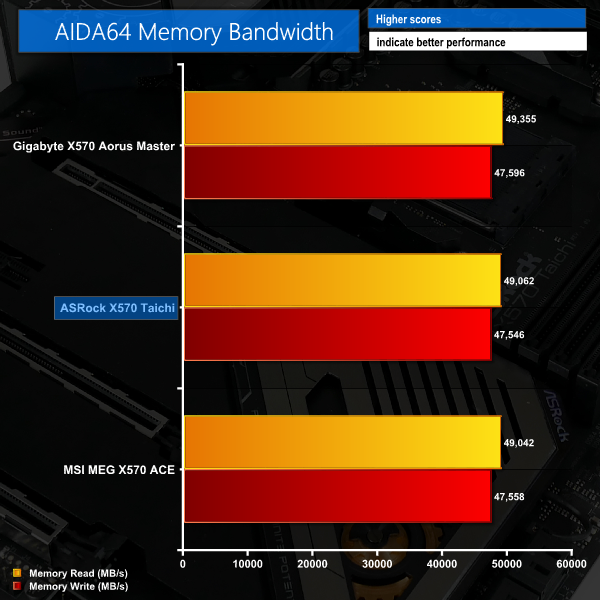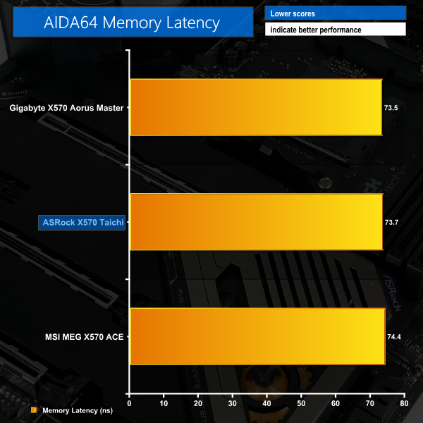 Memory bandwidth is where we’d expect it for 3200MHz CL14 DDR4 in dual channel configuration. The same can be said for latency performance which came in a touch slower than our X570 leader.