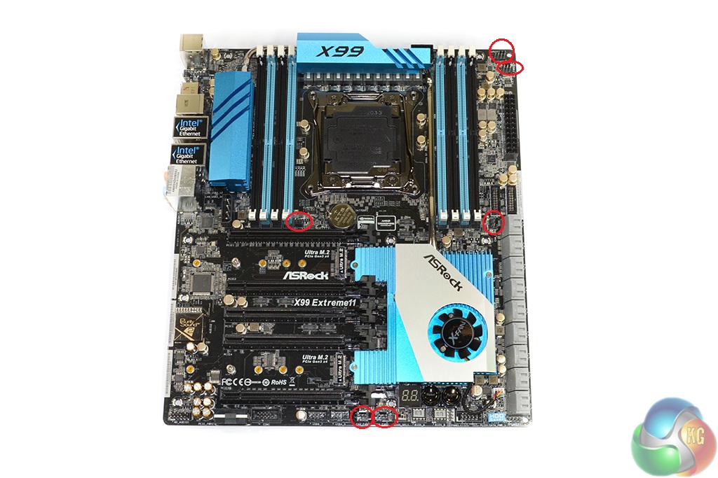 Given a potential target audience of high-performance enthusiasts (who may value aesthetics), ASRock maintains its recently-adopted light blue and black colour scheme for the X99 Extreme11.