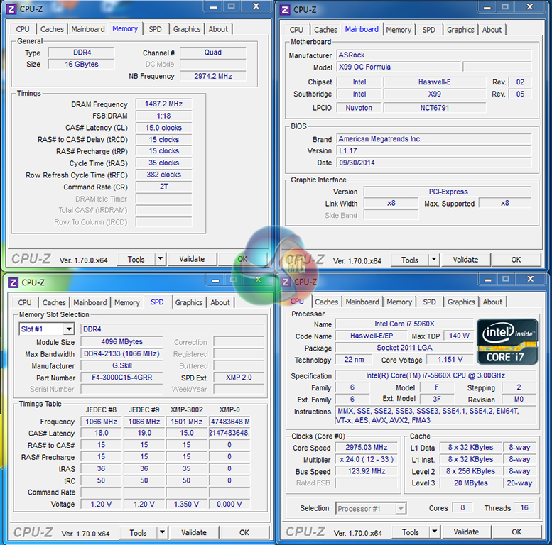 ASRock's X99 OC Formula was able to take our 5960X to its 4.4GHz limit with our applied overclocking settings. This is the same frequency that the MSI X99S Gaming 7 and Asus X99 Deluxe motherboards topped-out at.