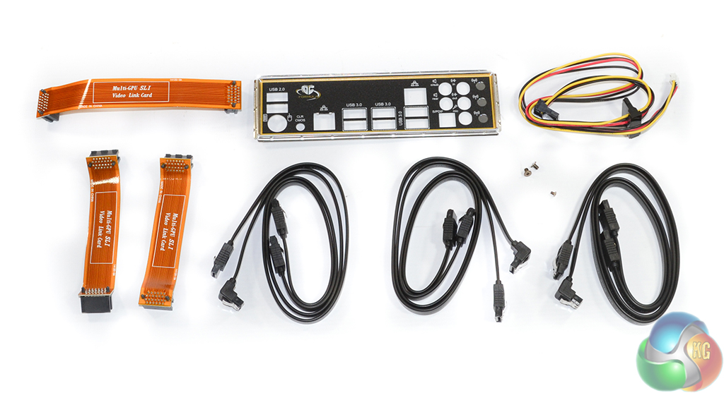 Cables and accessories supplied with the X99 OC Formula are situated inside a pull-string cloth bag. While this is not much use directly from the factory, it is helpful to users who open up a set of cables and then put them back in storage – no longer do they spill about the empty motherboard box.