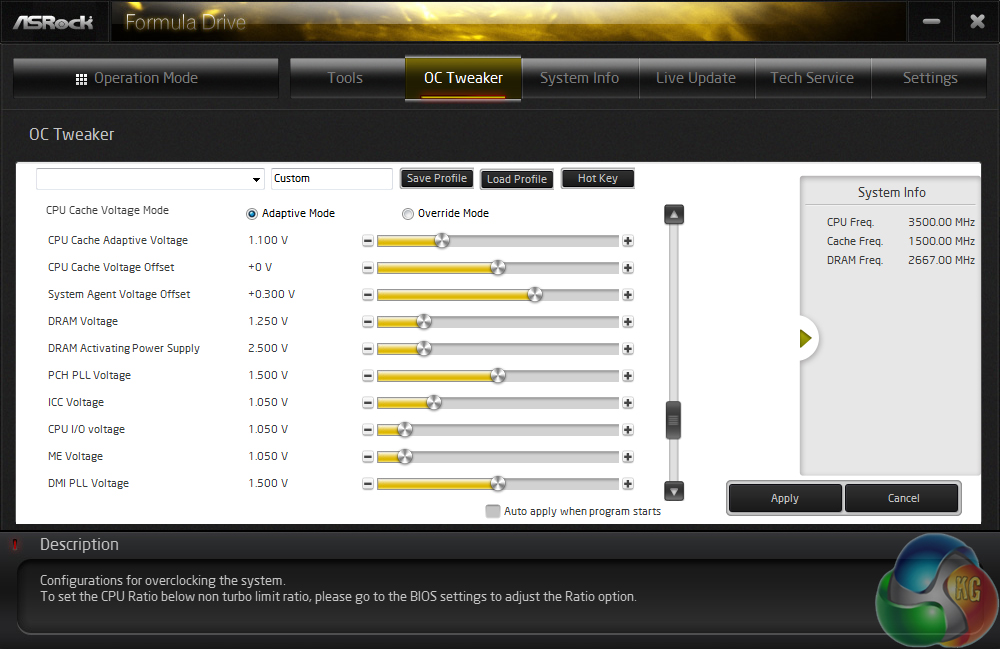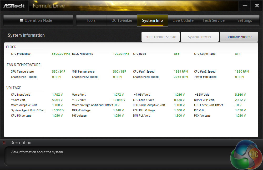 Readings relating to system parameters such as voltages, frequencies, and fan speeds are outlined in the System Info page, although not all of them are correct (as we will discuss later in the review).