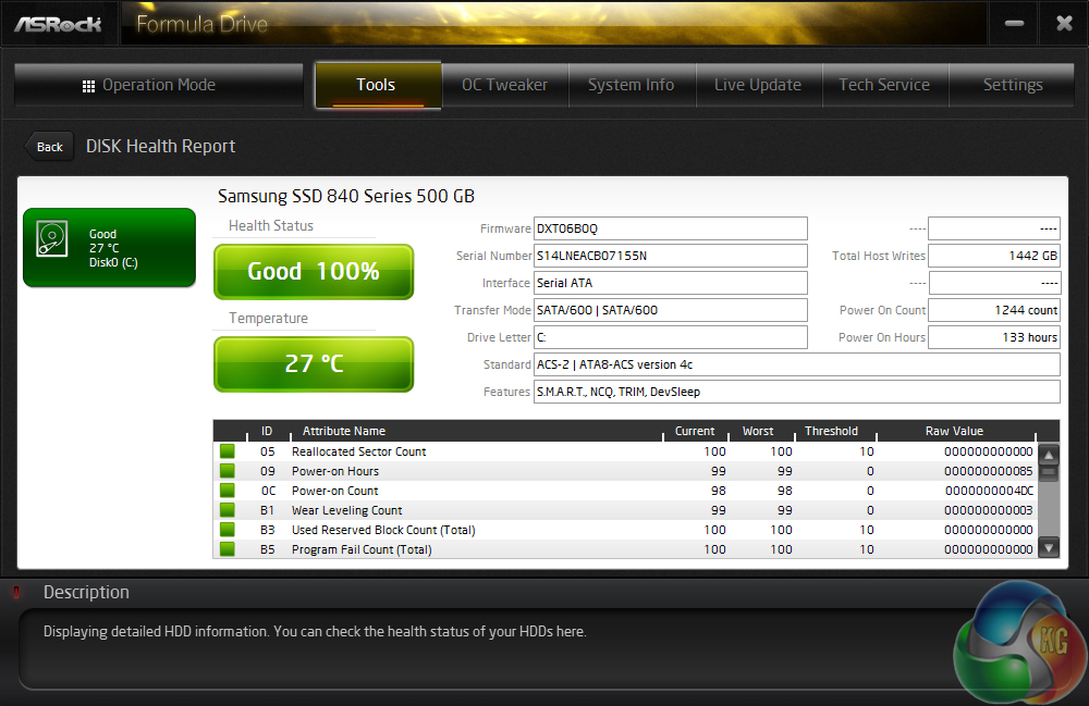 The health and other general statistics relating to a storage drive can be read via one of ASRock's tools.