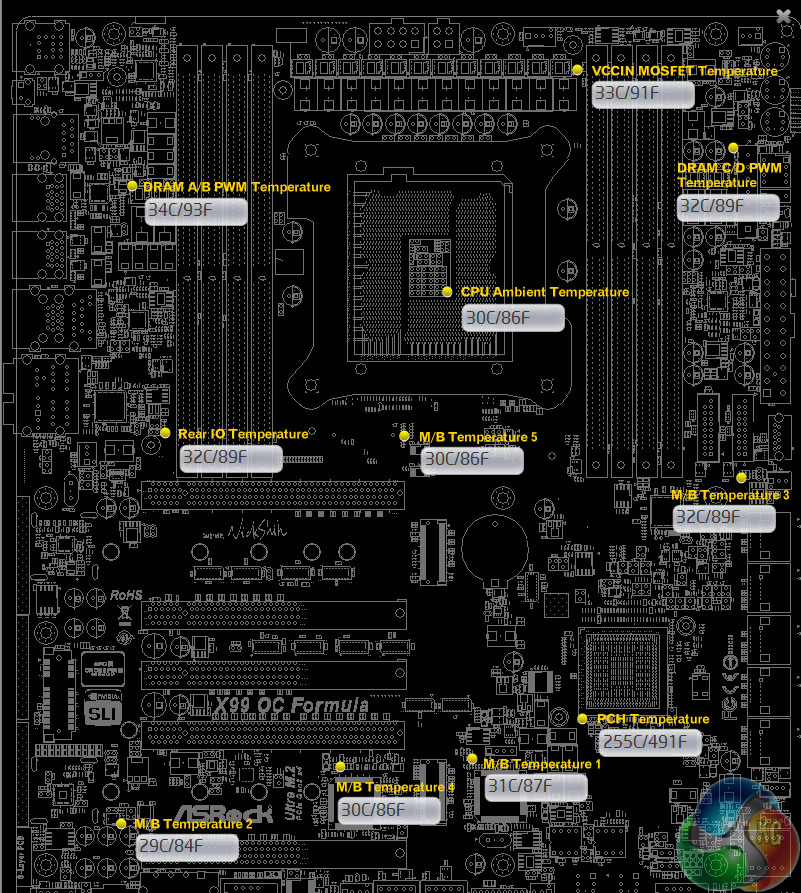 ASRock also puts its convenient Board Explorer tool in the Formula Drive software package. There's also a section that displays the temperature being read by each of the board's eleven monitoring points.