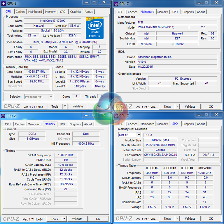 - MSI X99S Gaming 7 (BIOS V17.3B1) – with 3.56GHz CPU and 16GB (4x 4GB) Corsair Vengeance LPX 2800MHz CL16 DDR4 @ 2800MHz 1.20V.