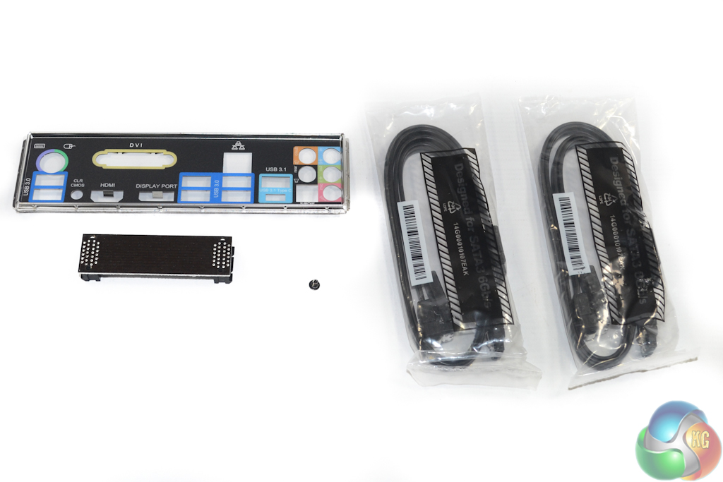 One way to keep a budget motherboard hitting its pricing target is by offering a basic accessory bundle. ASRock does pretty much that by including four SATA cables, the rear IO shield, a screw for the M.2 connector, and a rigid SLI bridge.