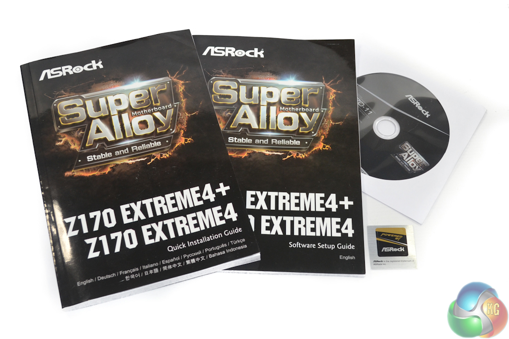 The standard affair of hardware and software manuals is provided alongside a drivers CD and a black and gold case sticker.