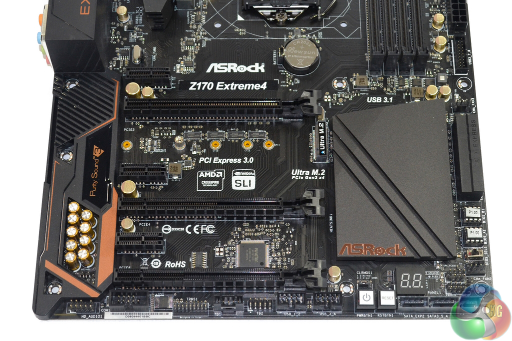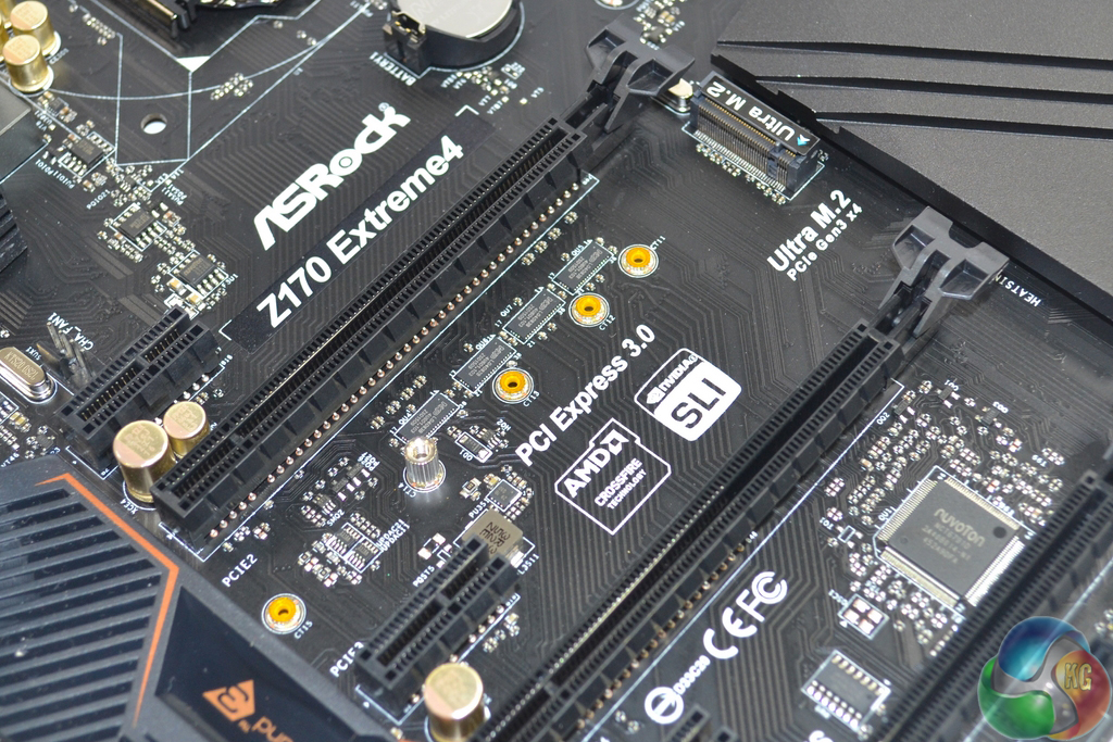 Up to 32Gbps of bandwidth is provided to M.2 PCIe SSDs via four lanes of PCIe 3.0 connectivity. The PCIe lanes are taken from the Z170 chipset's quota and therefore do not interfere with CPU-derived lanes that are crucial for maintaining full-speed SLI/CrossFire capability.