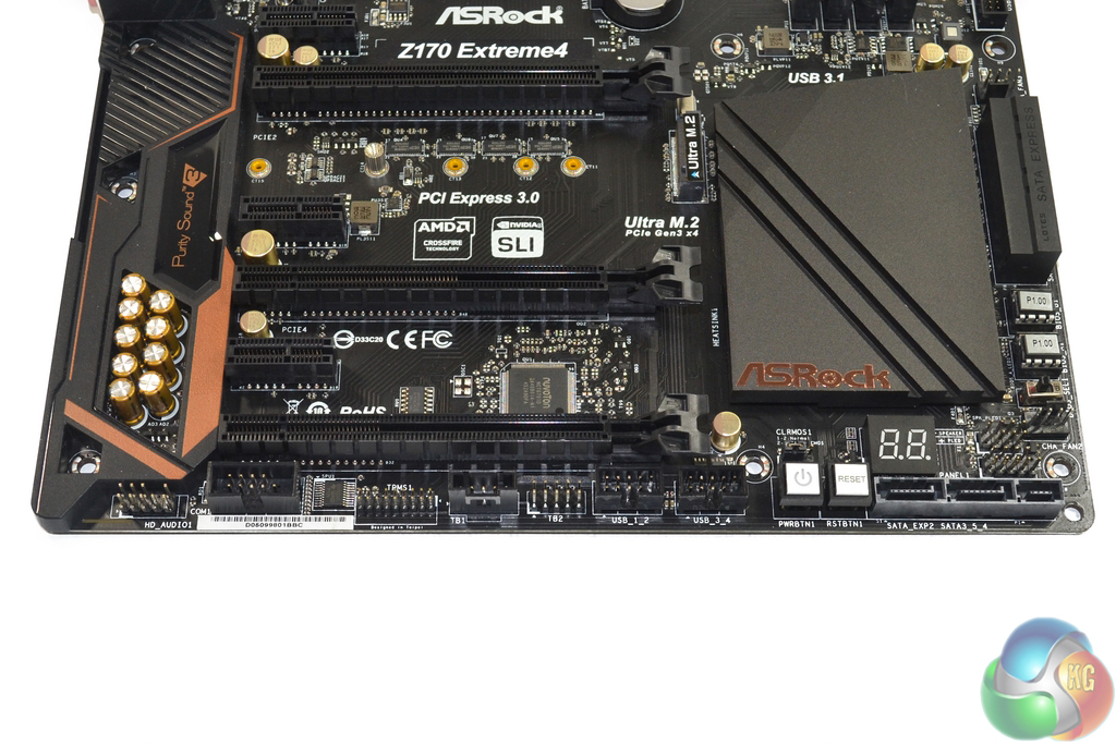 ASRock also outfits the Z170 Extreme4 with a trio of open-ended PCIe 3.0 x1 slots. These connectors can be used for devices which utilise a connector that is physically larger than PCIe x1 but do not necessarily need more than a single lane of PCIe bandwidth.