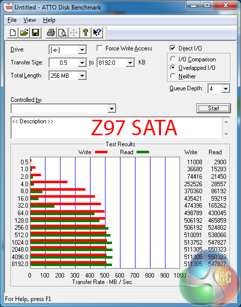 Z97 SATA 6Gbps performance is as we would expect; a SATA-powered SSD will not be bottlenecked by the Z97 Extreme6.