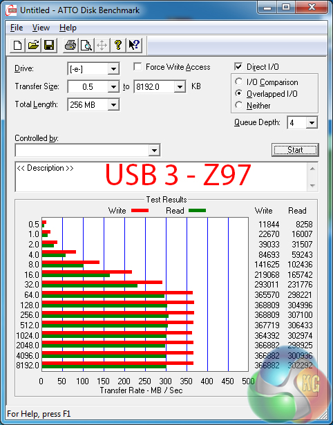 USB 3.0 transfer rates of the Z97-powered ports are identical to other boards without UASP-activating software.