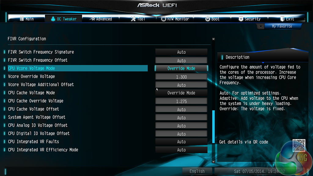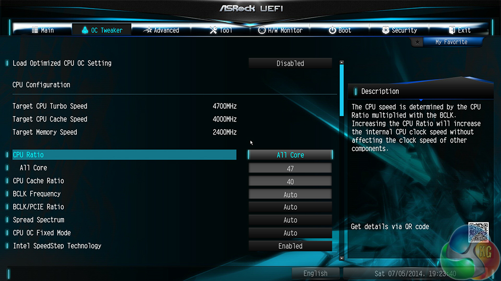The 4.5 and 4.6GHz profiles seem well-optimised, but the 4.7GHz option's 1.400V VCore is higher than I'd like to use for 24/7 operation.