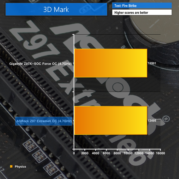 As a performance comparison, we have included the overclocked results from Gigabyte's Z97X-SOC Force motherboard. The maximum overclocked configuration achieved with both boards was a 4700MHz (47 x 100MHz) processor frequency and 2400MHz CL10 memory speed.