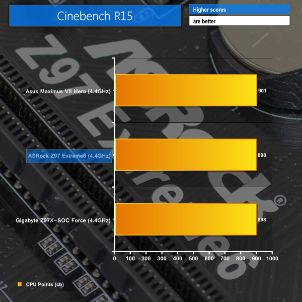 ASRock's motherboard continues its positive performance in CPU-heavy benchmarks. The Z97 Extreme6 is as fast as the other motherboards that we have tested with our 4790K processor.