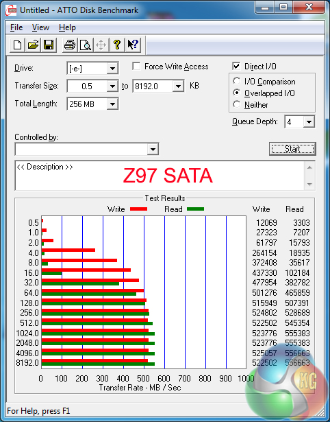 SATA 6Gbps performance is as we would expect for a Z97-based motherboard; a modern SSD utilising the interface will run without a performance handicap.