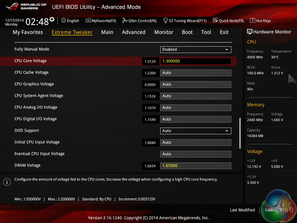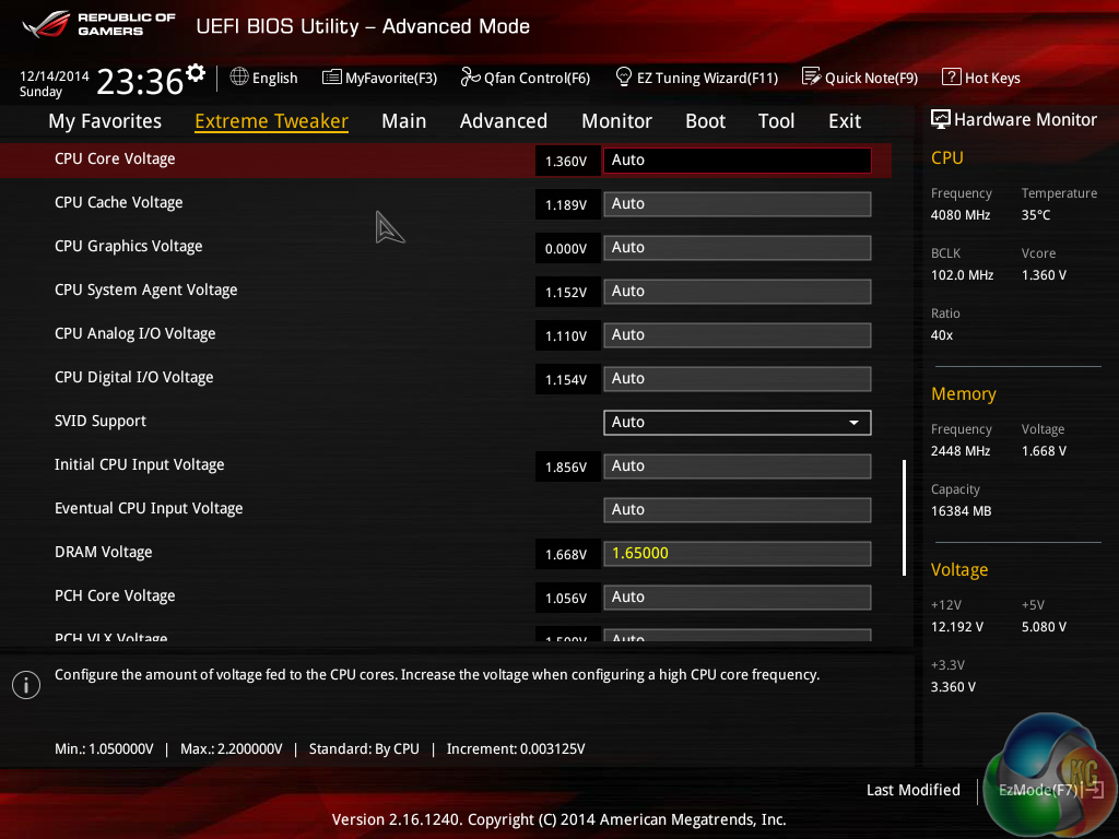 All voltage settings were left at ‘auto', allowing the motherboard to apply the levels it deemed fit.