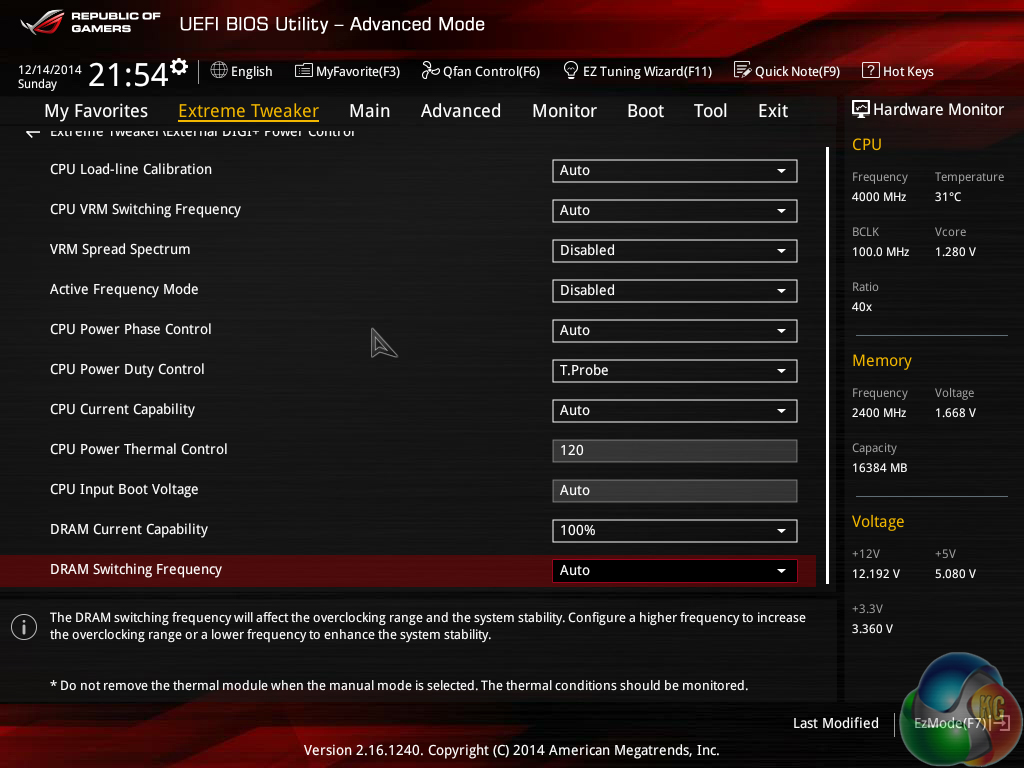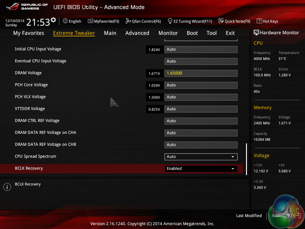 We have no complaints whatsoever regarding the Z97 iterations of the ROG boards' interface. Not even the comparatively low 1024×768 resolution can be registered as a negative because Asus manages to display a relevant amount of information on each frame without making the screen full of confusion.