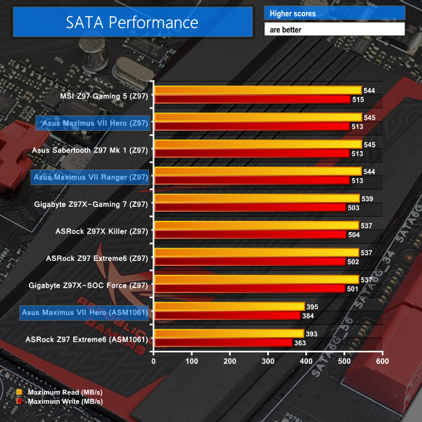 The ASMedia ASM1061 implementation deployed by Asus' Maximus VII Hero outdoes that used on ASRock's Z97 Extreme6.
