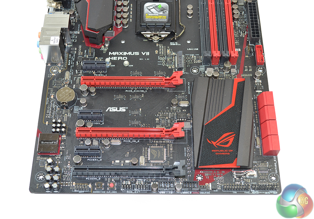 As with the Ranger, onboard power, reset, MemOK, and KeyBot buttons are utilised on the Maximus VII Hero. I personally find onboard buttons useful when testing a motherboard outside of a chassis environment. While this is an irregular occurrence for most gamers, an onboard power button does make on-the-table troubleshooting a more straightforward procedure.