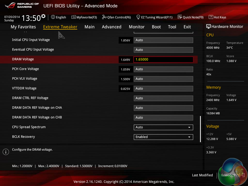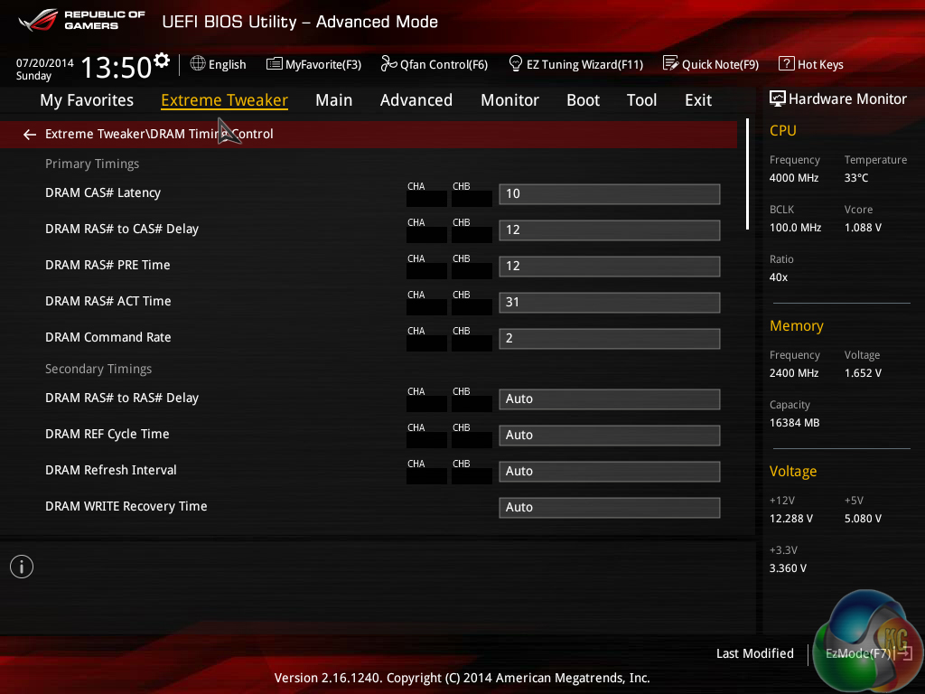 Memory timings can be adjusted in their relevant section. Unlike many of its competitors, Asus does not deploy the Z97 ROG UEFI with pre-set memory frequency profiles built by its in-house overclocker. We would assume that the custom profiles are reserved for the overclocking-geared ROG motherboards.