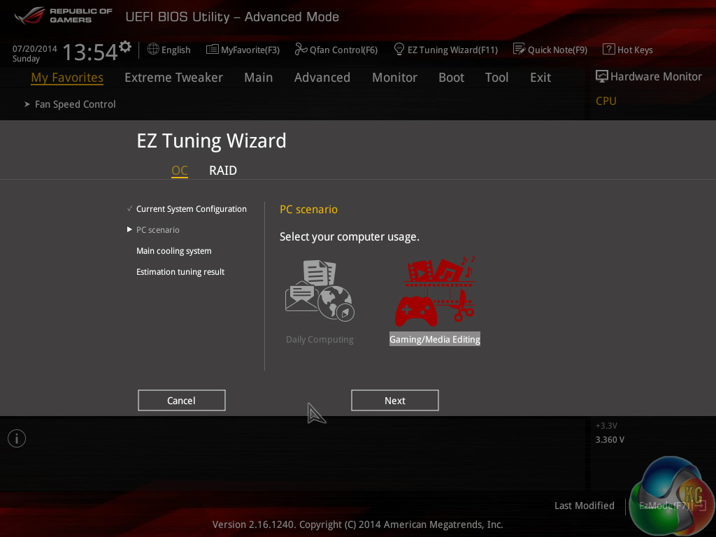 An automated speed boost can be applied to the CPU and memory after selecting a handful of settings through Asus' EZ Tuning Wizard.