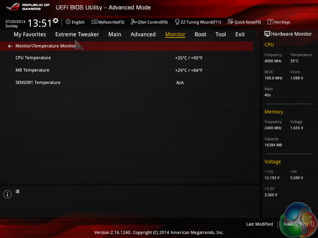Asus provides plenty of monitoring readouts for board voltages and fan speeds. Temperature readings are scarce though, with only the CPU and motherboard being displayed consistently.