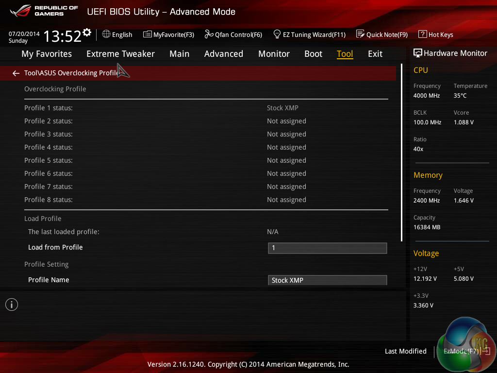 Asus' usual set of tools is supplied in the ROG UEFI, as well as the convenient Secure Erase. Users can route through a drive to look for a BIOS update file and update to eight settings profiles can be saved.