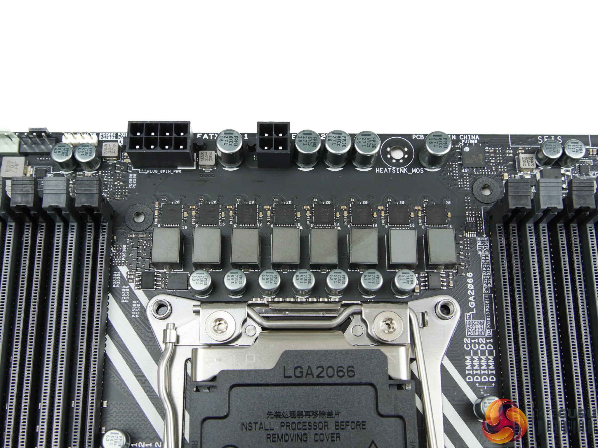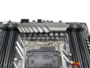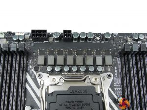 These 60A-rated integrated PowIRstage offerings from International Rectifiers are widely regarded as being some of the best power delivery MOSFET solutions on the market. They are both electrically efficient and space efficient, with the latter point being important for the tight space constraints on X299 motherboards. We did, however, notice a little coil whine on our board sample.