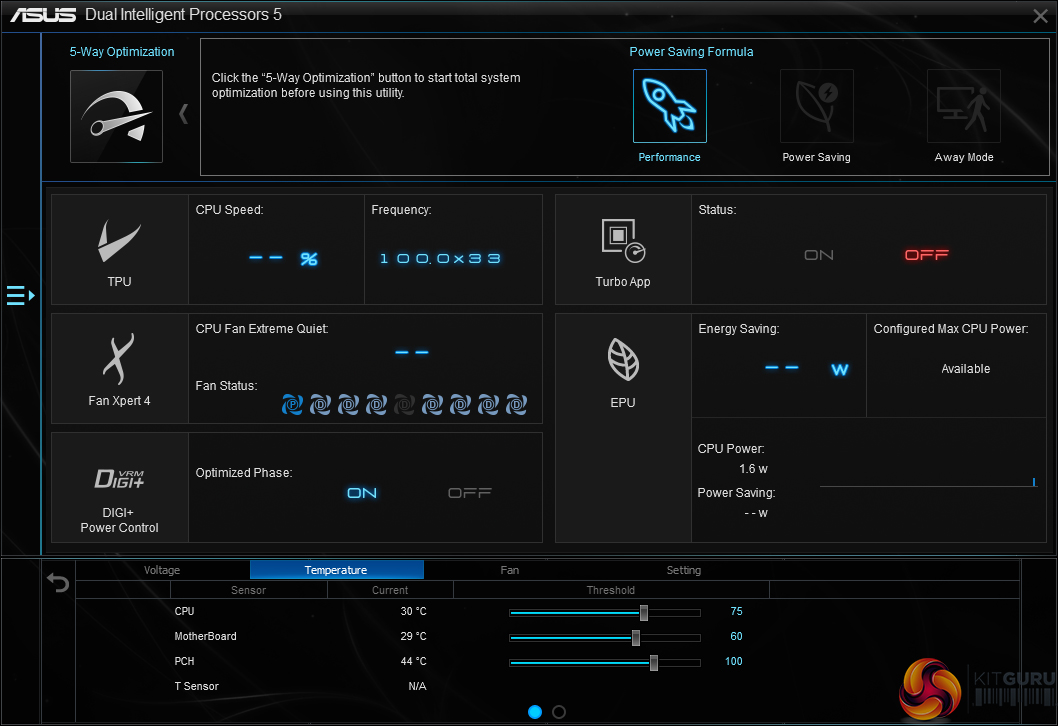 Automated system tuning conducted by the 5-way optimisation tool can also be selected inside AI Suite 3.