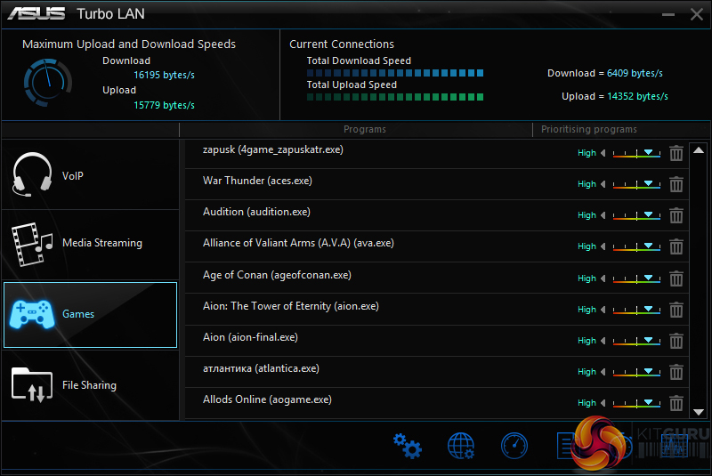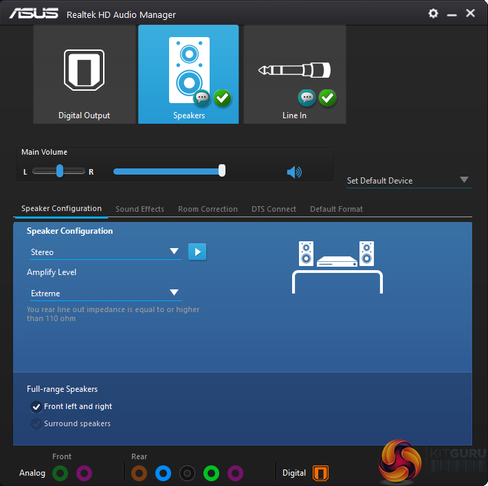 TurboLAN allows basic management of network priorities for the system. ASUS includes a feature-laden skin on the Realtek HD Audio Manager.
