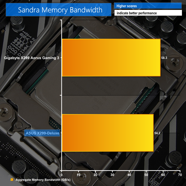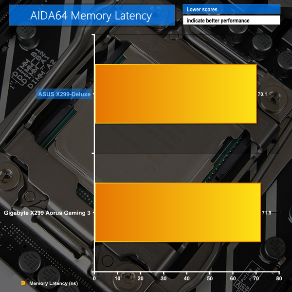 Memory bandwidth is lower than expected from a quad-channel solution. However, ASUS makes up for this with lower latency than a Gigabyte X299 alternative.