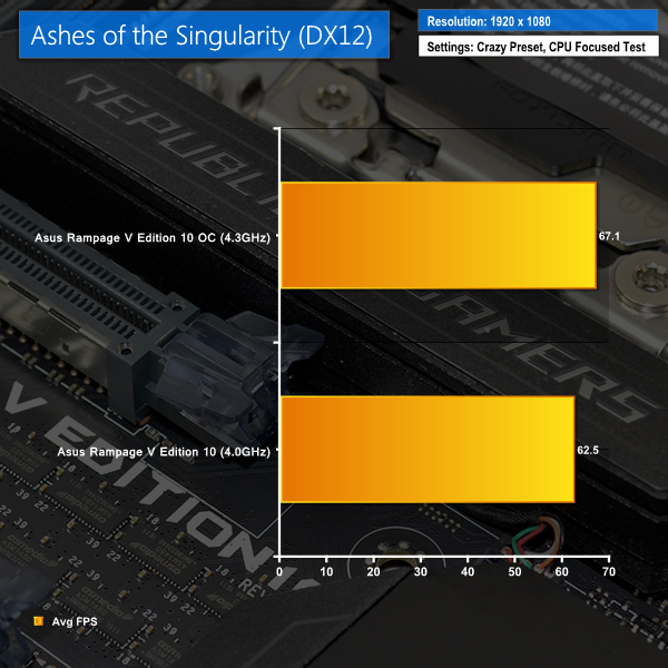 Solid performance boosts are achieved by overclocking. Even Ashes of the Singularity shows a frame rate rise when the system is overclocked.