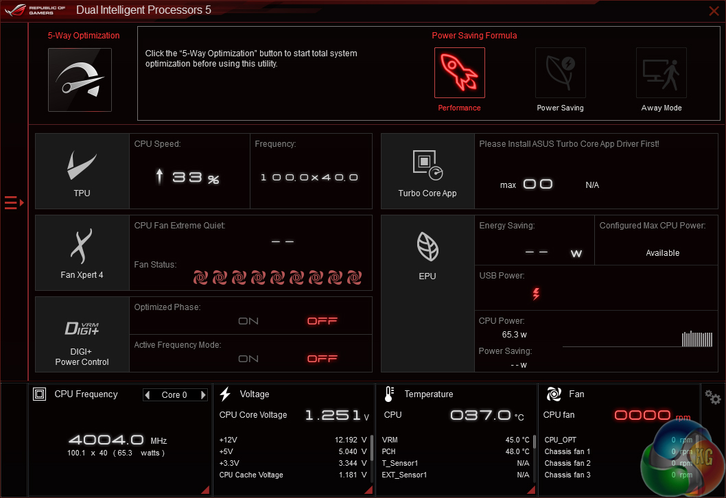 Further system control options are available. Asus includes a tool which allows the CPU to speed specific applications by way of a frequency bump when the desired software is launched.