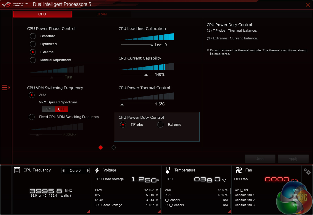 Power management options for the CPU and DRAM are found in the Digi+ page. It’s more likely that these options will be tweaked by overclockers through the BIOS in order to maintain their operation in the event of an OS crash.