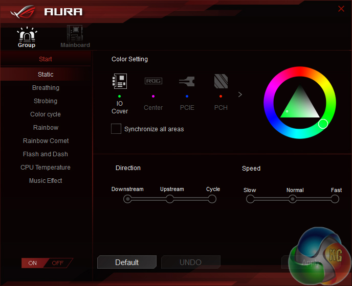 I particularly like the ability to set different lighting colours for separate areas of the motherboard.