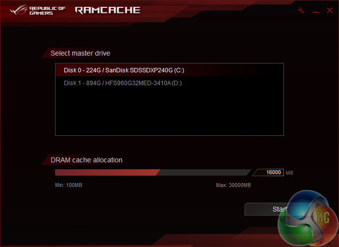 ROG RAMCache uses the system memory (up to approximately 30GB) to enhance reduce the transfer time of files from an external storage drive to an internal system drive. This is a helpful tool to users how frequently transfer large amounts of data and don’t want their external storage drive connected to one particular system for longer than is necessary.