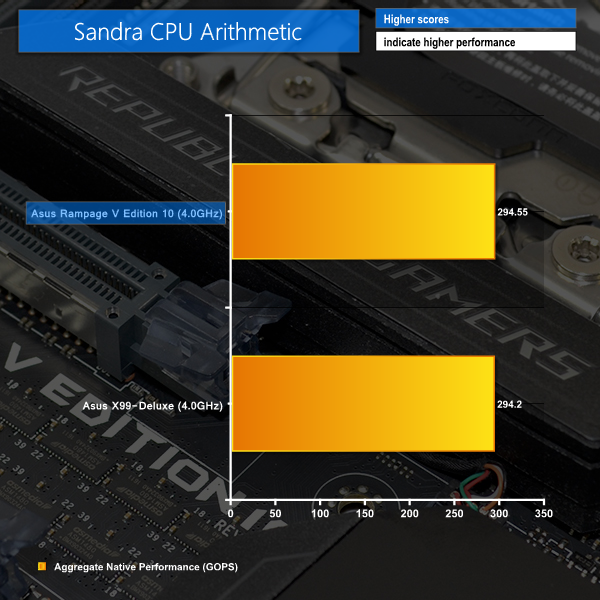 SiSoft Sandra 2016 is a multi-function utility program that supports remote analysis, benchmarking and diagnostic features for PCs, servers, mobile devices and networks. We run the application’s processor arithmetic test to gauge the CPU performance on each tested motherboard.