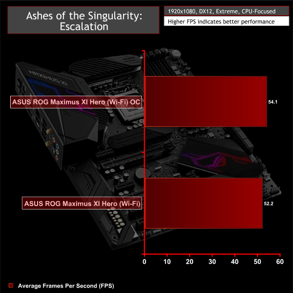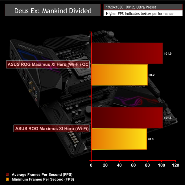 Slight increases in gaming performance can be obtained by way of overclocking. ASUS' ROG Maximus XI Hero (Wi-Fi) didn't miss a beat throughout our repeated gaming runs.