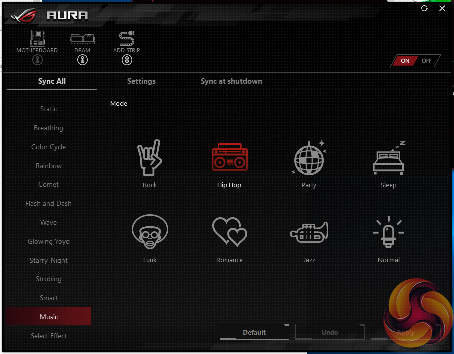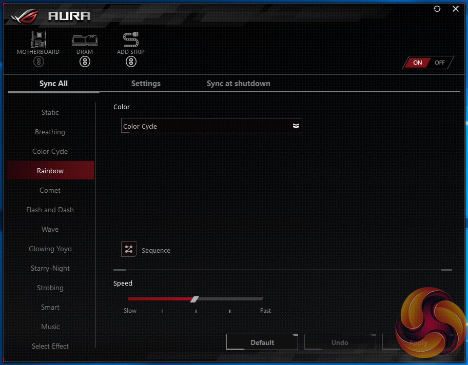 ASUS’ AURA RGB tool is a very comprehensive piece of software used for managing the colours and operating parameters of onboard and connected LEDs. LED operating modes can be synchronised with other compatible hardware, such as Patriot Viper DDR4 memory in our testing, or managed for the motherboard alone.