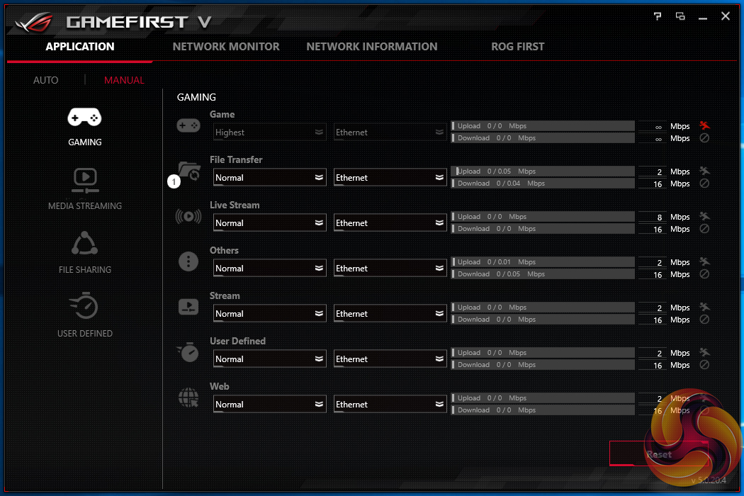 GameFirst V can be used to prioritise network traffic in a similar fashion to Killer’s Network Manager software, but whilst using an Intel I219V NIC. For example, higher priority can be set to Steam or a game than a web browser in order to prioritise traffic and minimise lag during gameplay.