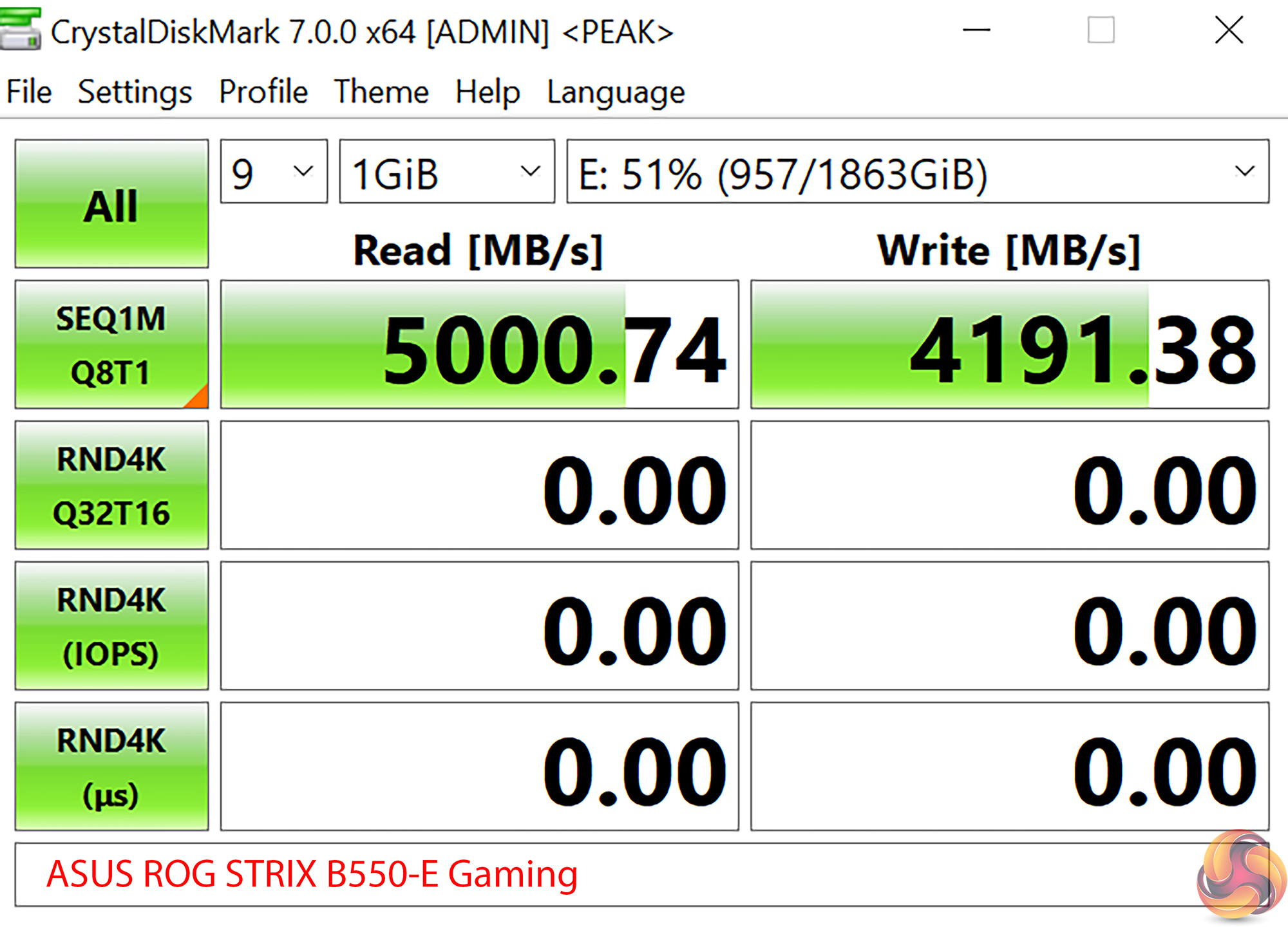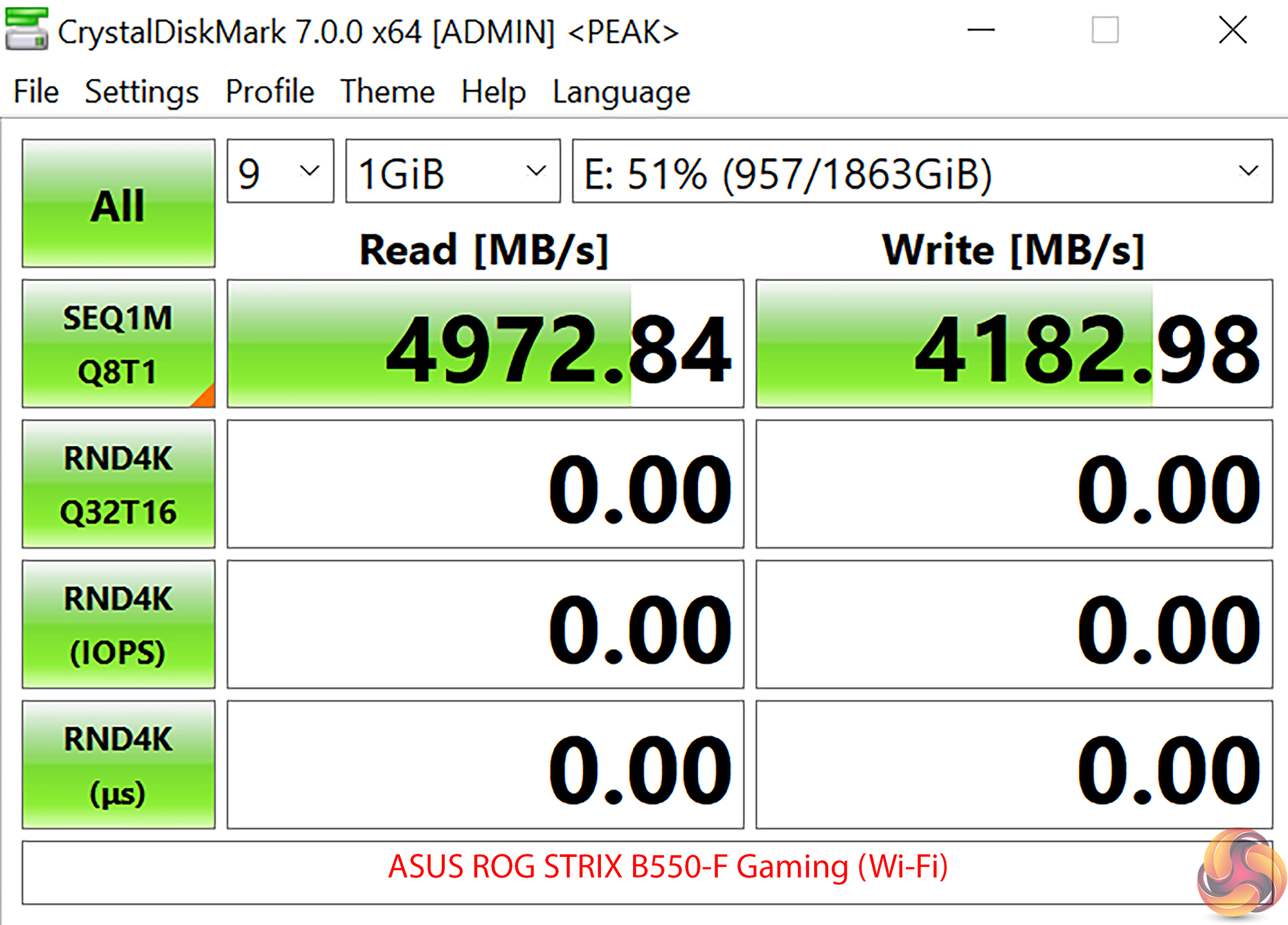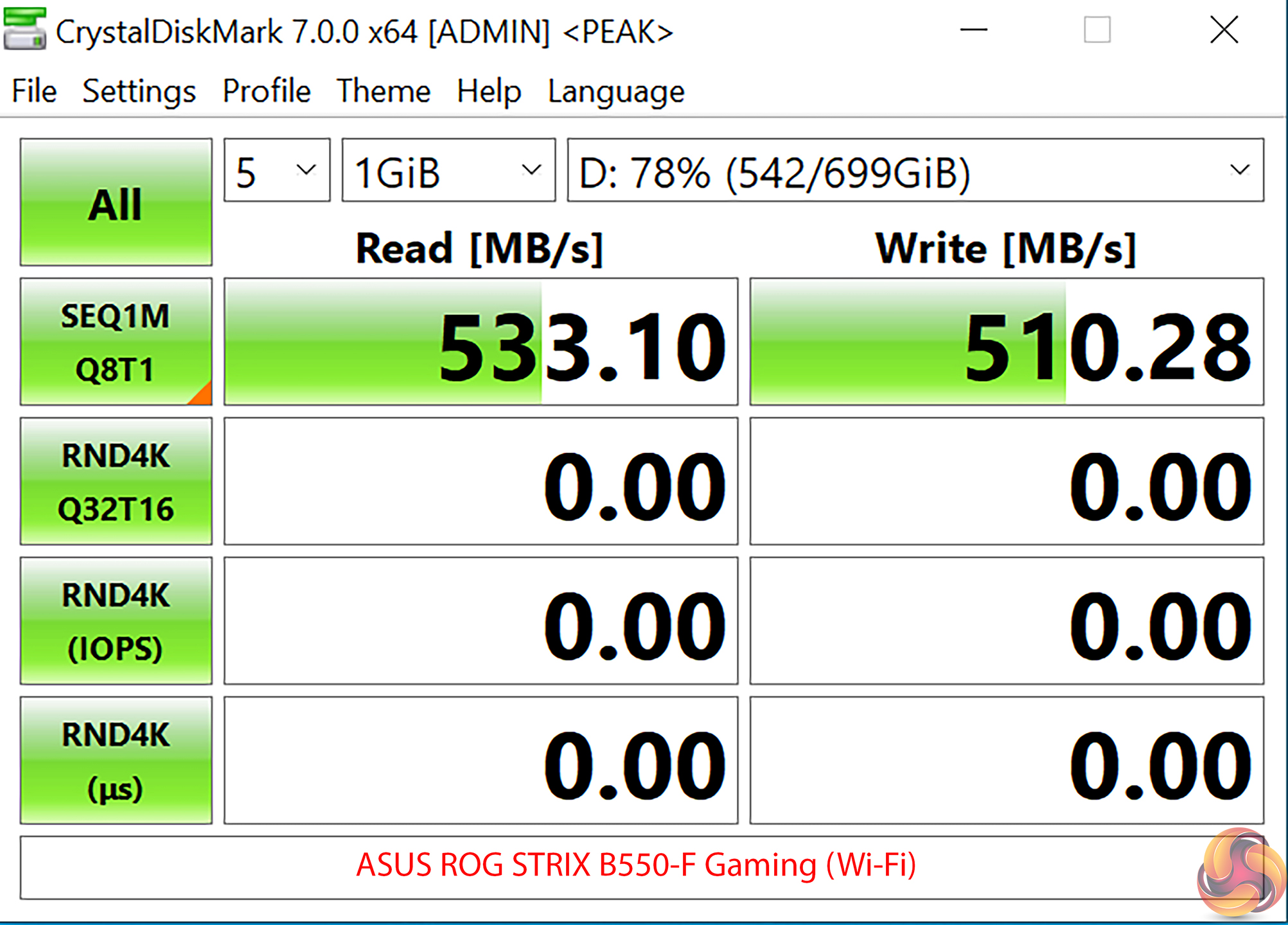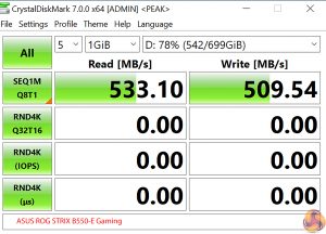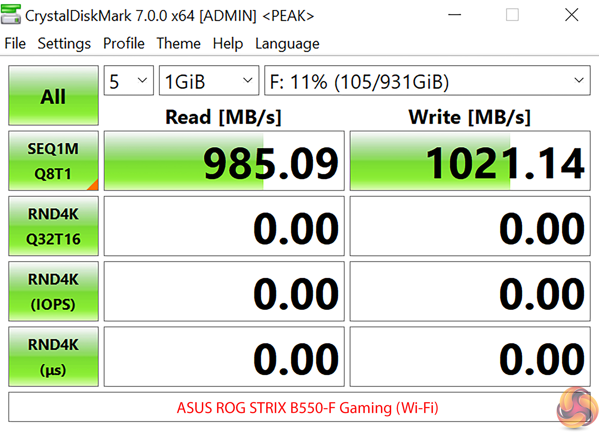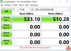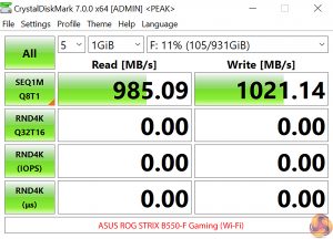 We comfortably managed a solid 1GBps from the chipset-fed USB 3.2 Gen 2 10Gbps ports on the ASUS ROG STRIX B550-F Gaming (WiFi).