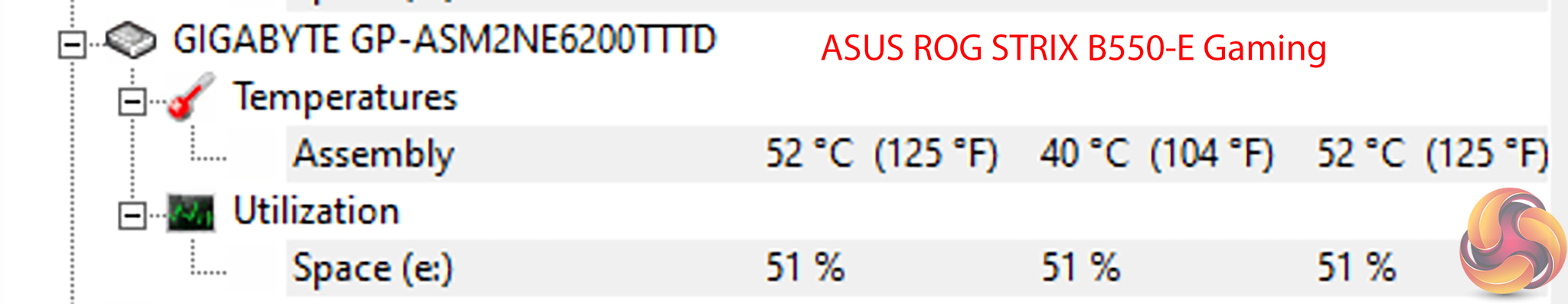 Thermal performance from the aluminium M.2 heatsinks was superior to the alternative design used by Gigabyte. The ASUS boards kept our heavily pushed SSD close to 50C and showed no signs of allowing the drive to go near its thermal throttling temperature.
