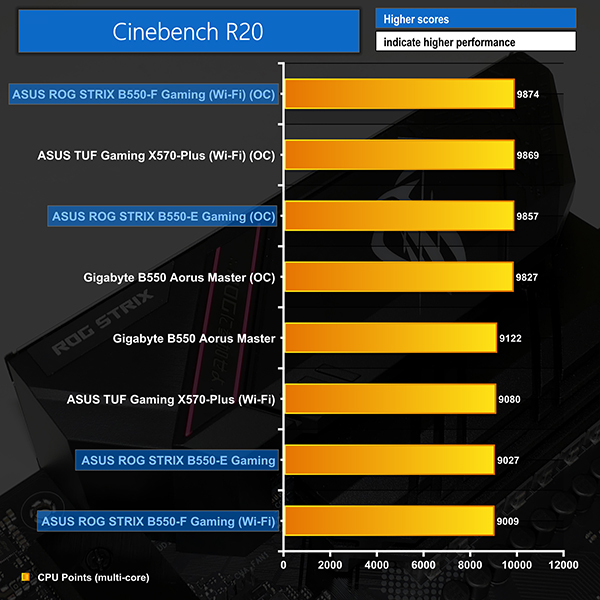 Both motherboards showed a good uptick in multi-threaded performance from our manual CPU overclock.