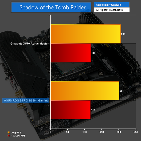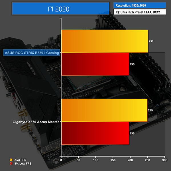 Either way, the gaming performance on ASUS’ B550-I Gaming is solid and shows no cause for concern.