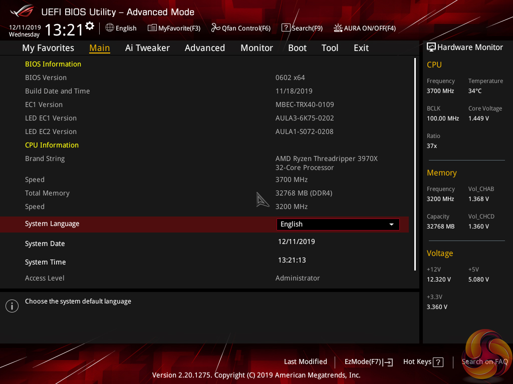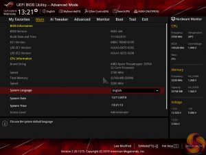 Hitting F7 allows the Advanced mode to be accessed. The Main page outlines information relating to the system and motherboard. The My Favorites tab can be convenient if you are frequently searching for a setting buried deep within the UEFI.