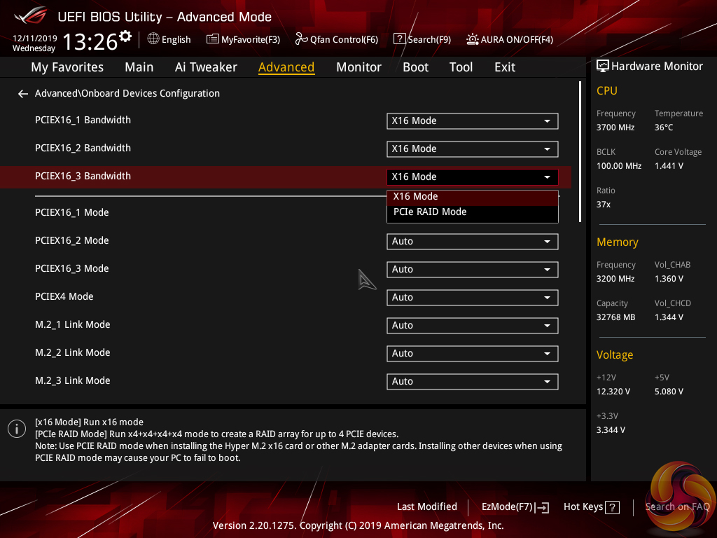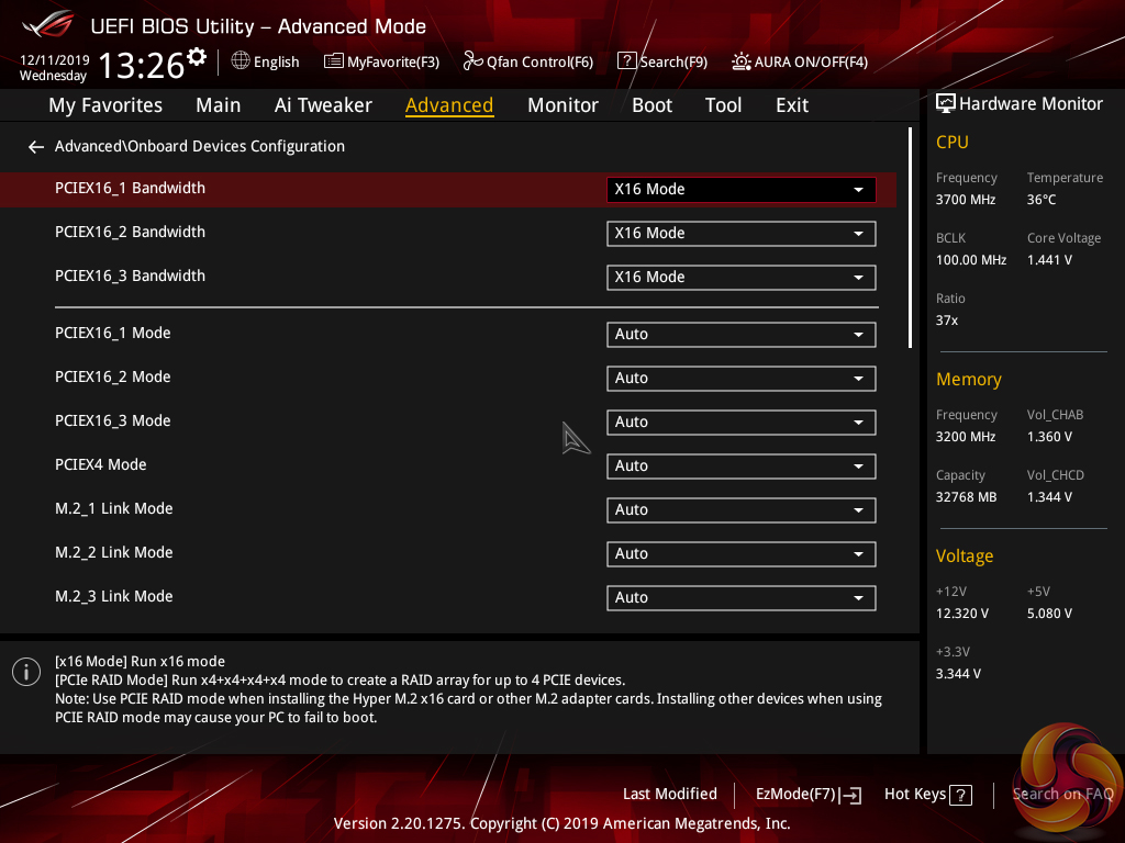 Under the Onboard Devices page, operation mode of the PCIe 4.0 slots can be adjusted and the bifurcation can be set. This subsection also provides an option for the onboard RGB lighting to be enabled or disabled during sleep and power-off modes.