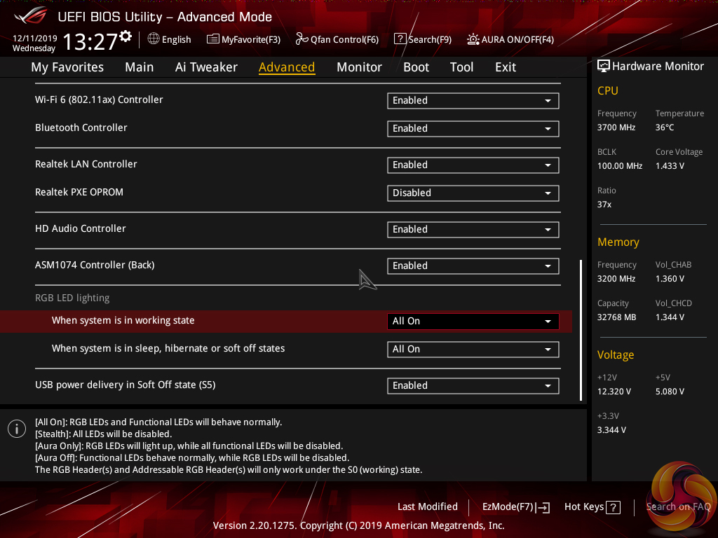 The search function is useful for quickly jumping to specific sections. ASUS gives quick access to a toggle that allows the Aura LED mode to be adjusted.